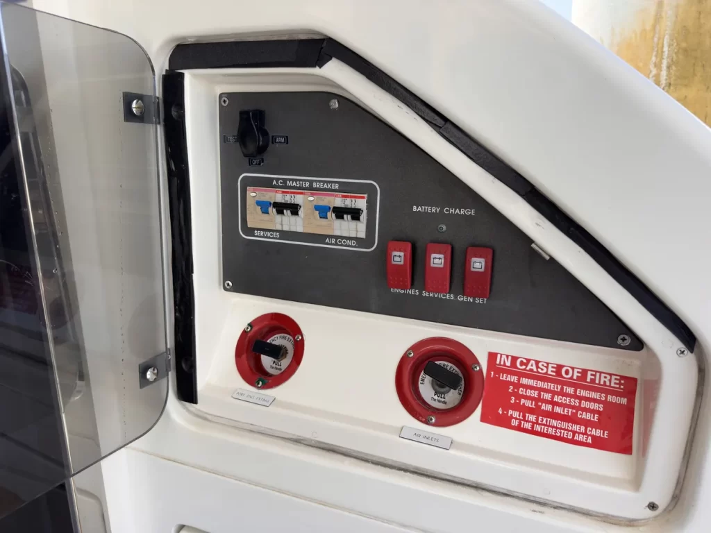 - New 12KG remote fire extinguisher canister installed in engine room with new activation cable (Azimut factory supplied)