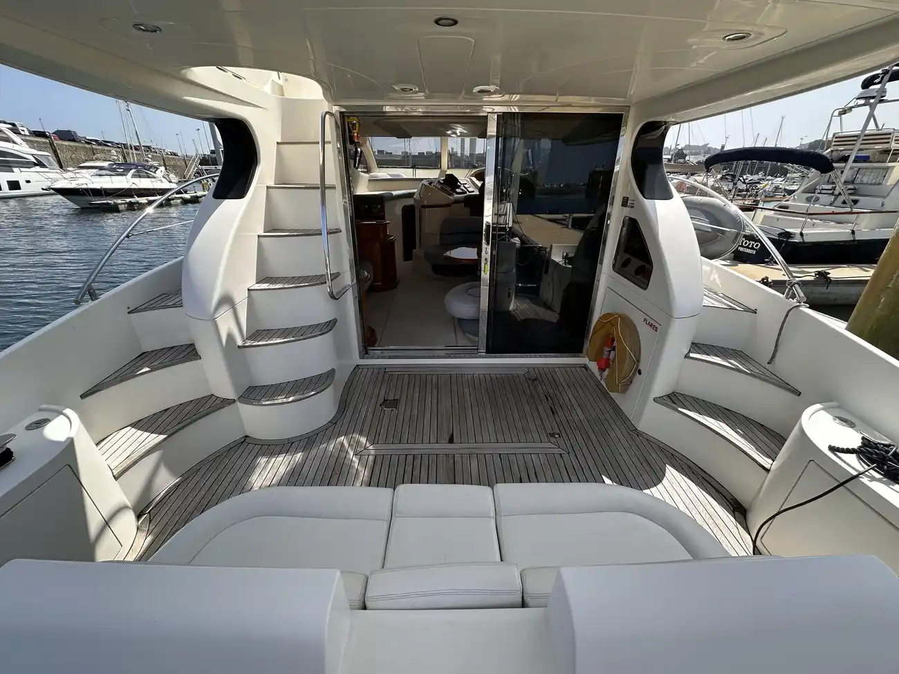 The yacht features a spacious cockpit with access on both sides to the bathing platform and dual access to the bow sundeck. Stairs lead to the flybridge where there is plenty of seating, entertaining space and a further sunbathing and relaxation area.