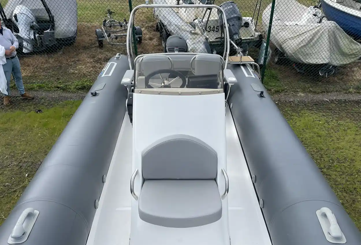 As you’d expect from a RIB, this Falcon 575 provides a great blend of sporty performance and seaworthiness, instilling plenty of confidence in the crew if sea conditions should deteriorate. She is a very easy to manage boat with nimble, quick handling- whether you’re controlling this Falcon at speed or during close quarters manoeuvring, the helmsman will feel fully in control.
