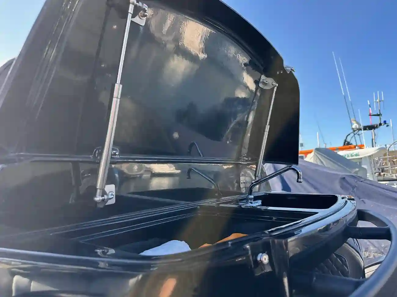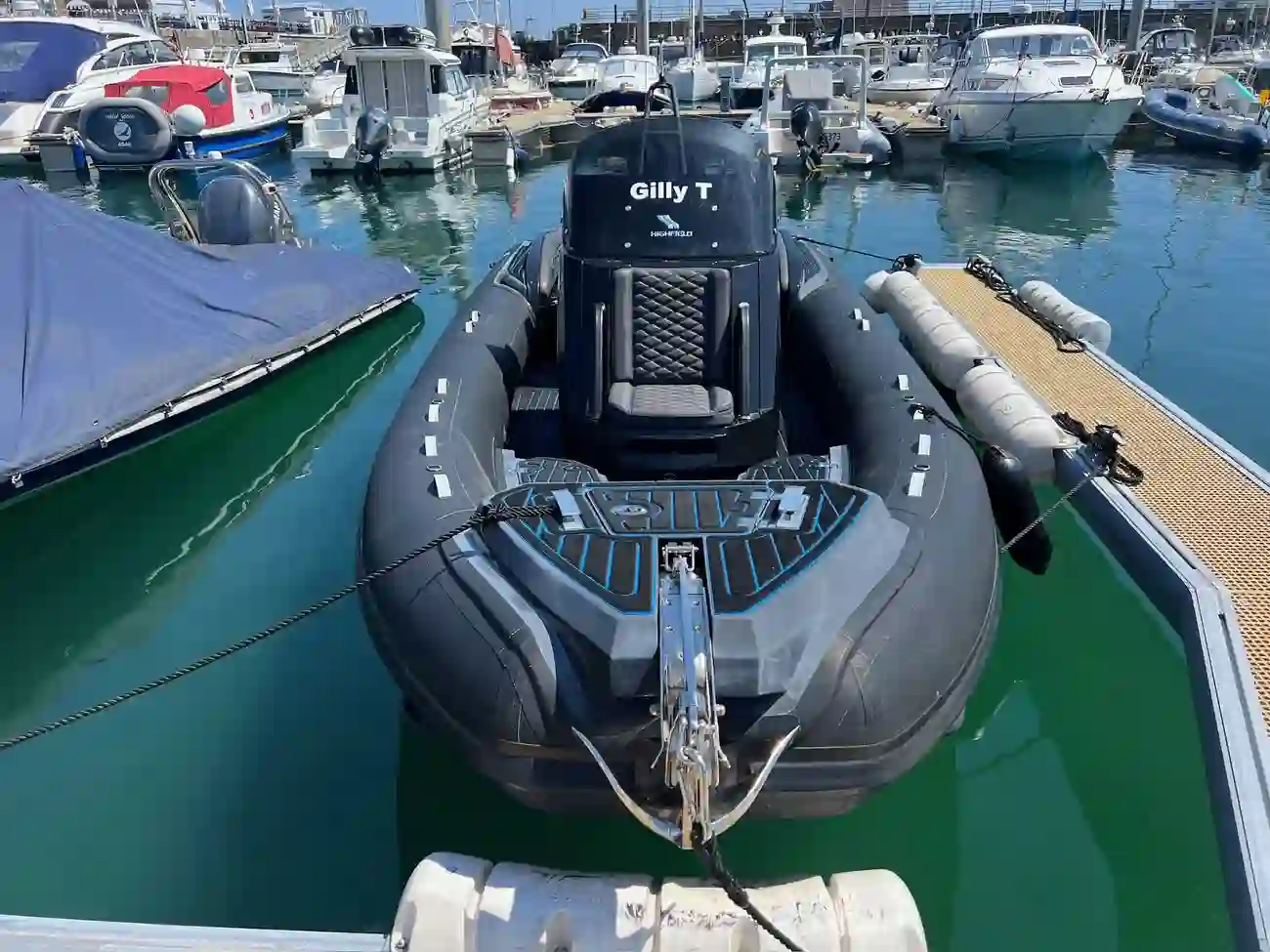 This Highfield Sport 800 was supplied new by South Pier Marine to her current owner. She’s a 2021 model with a 26-degree stepped hull (designed by Norwegian performance boat designer Petter Martens), giving this model extremely efficient planing ability at speed with a reduced wetted area of the hull compared to a deep-Vee.