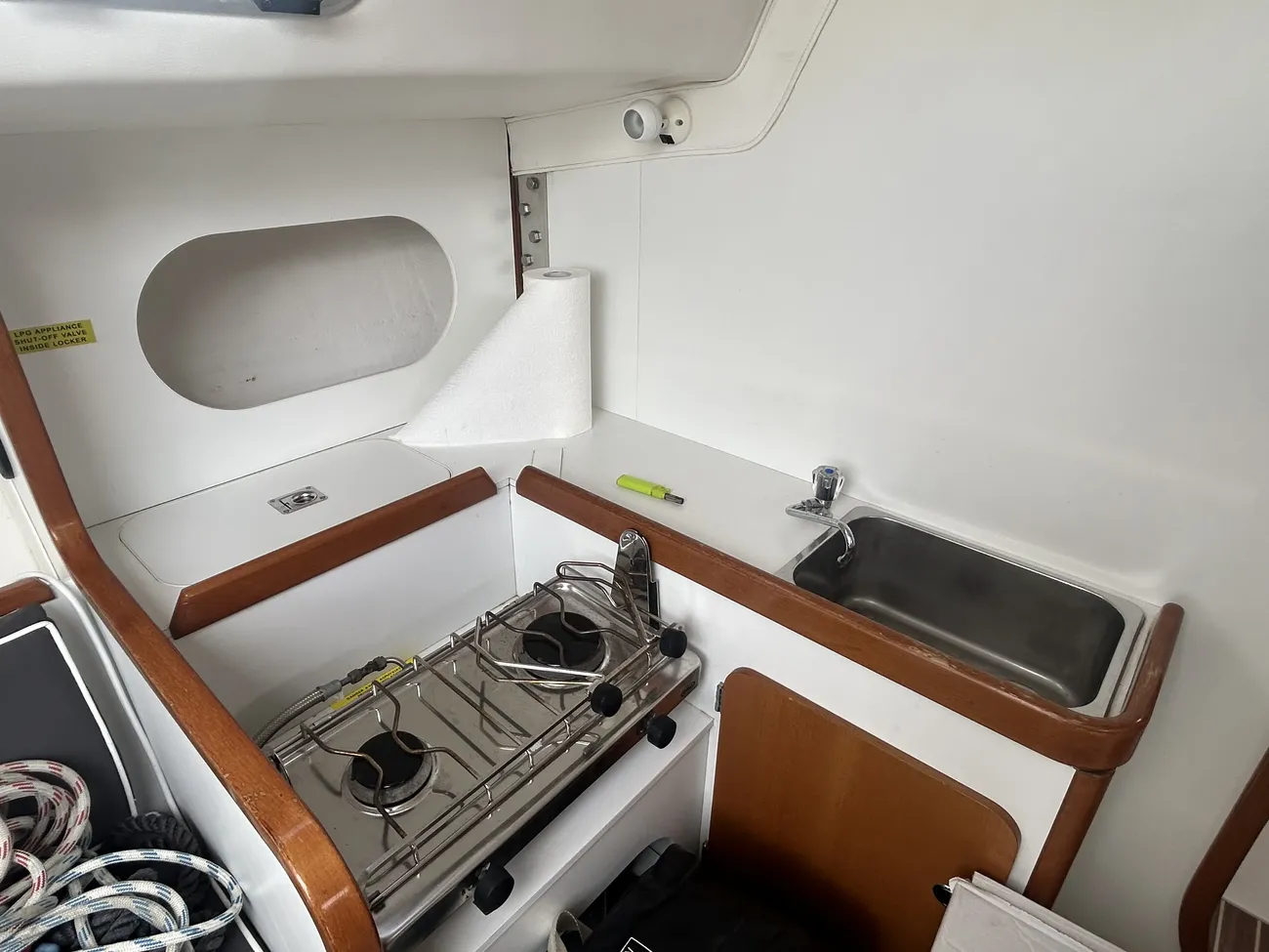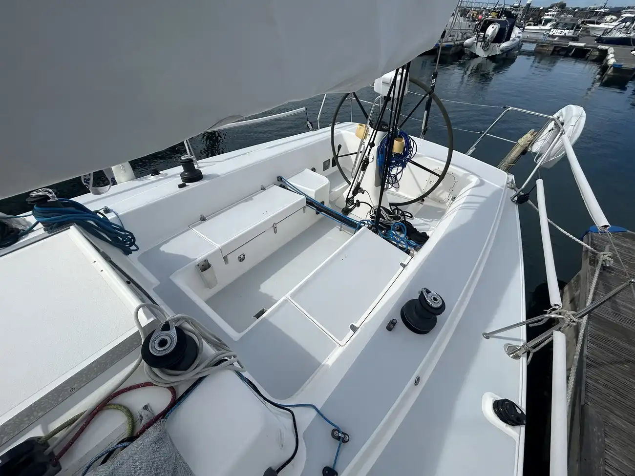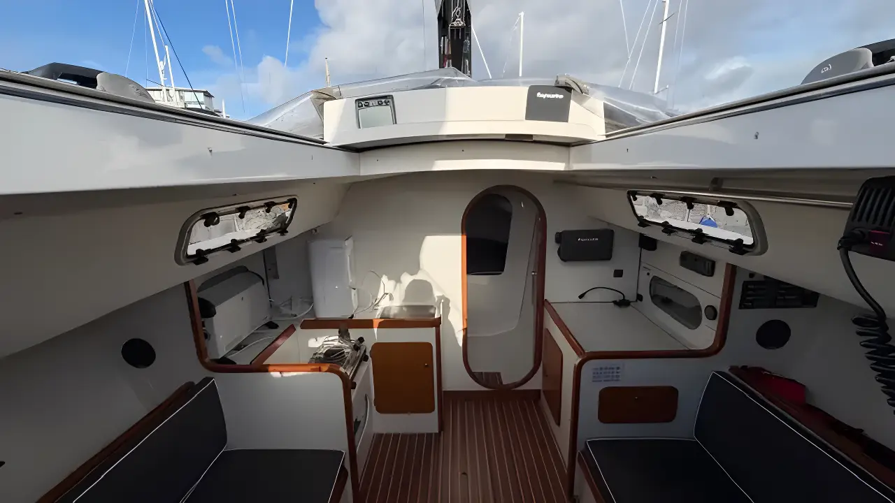 This yacht has been meticulously maintained and presents in excellent condition for her age. Gelcoat, rigging, and deck hardware are all in very good order and recent service history is available. She is race-ready and would be perfectly suited to an owner seeking a high-performance day sailing yacht with overnighting capability.