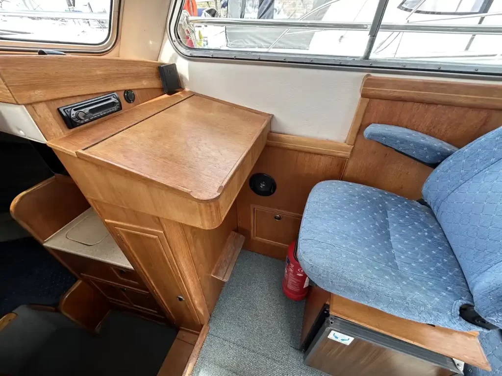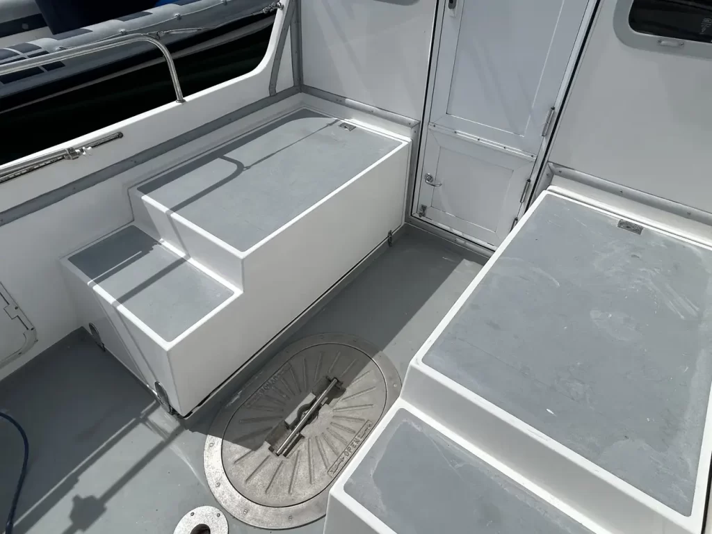 - Deck & Cockpit: Safe deep side decks, full cockpit enclosure, plenty of storage, teak-laid sole