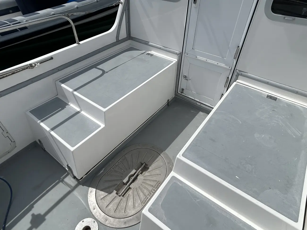 - Liferaft on the cabin roof.